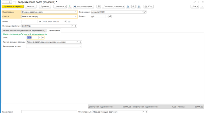 В последнее время все чаще и чаще бухгалтеры прибегают к практике ввода проводок ручными операциями в программе 1С:Бухгалтерия. Для многих это быстрее и удобнее, чем искать в программе специальный документ и думать, как его правильно заполнить. Такой подход может повлечь существенные ошибки в работе с контрагентами, учете НДС и УСН. В программе существует документ, позволяющий внести изменения в расчеты с контрагентами, когда период уже закрыт, провести взаимозачет, зачет авансов и задолженностей, списание задолженностей и другие изменения в расчетах. И этот документ – Корректировка долга.