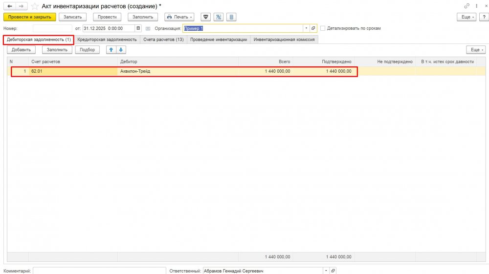 - Перейдите в раздел: Продажи → Расчеты с контрагентами → Акты инвентаризации расчетов.