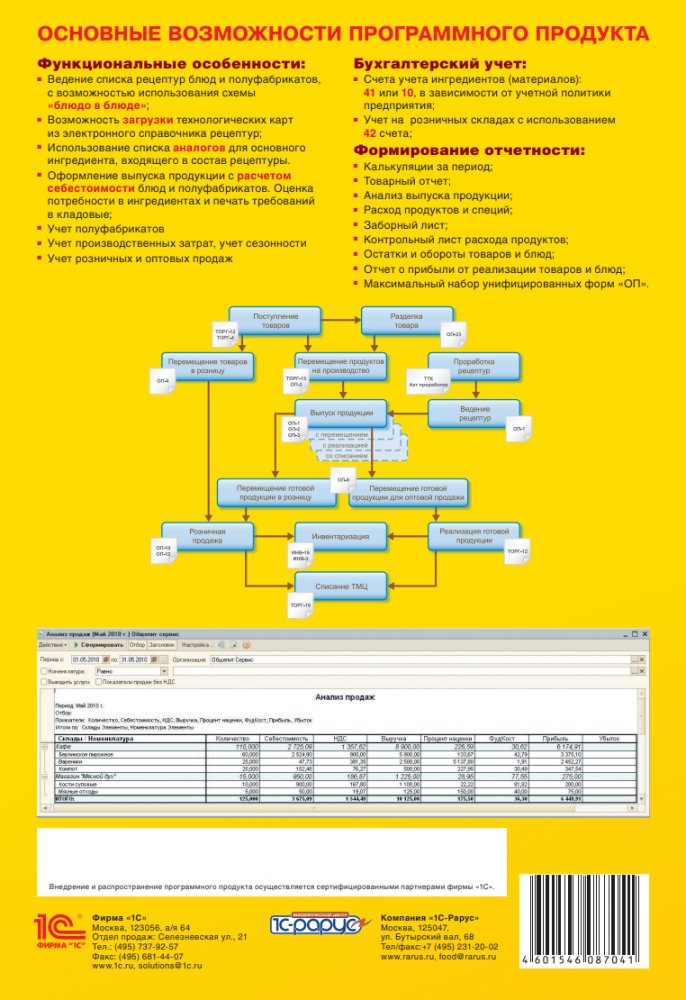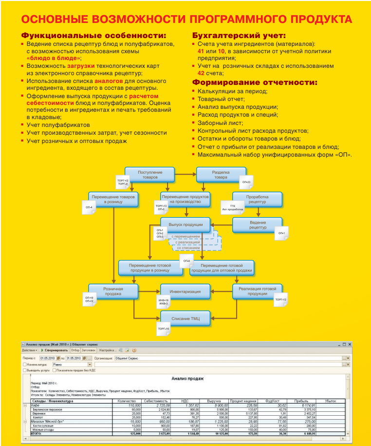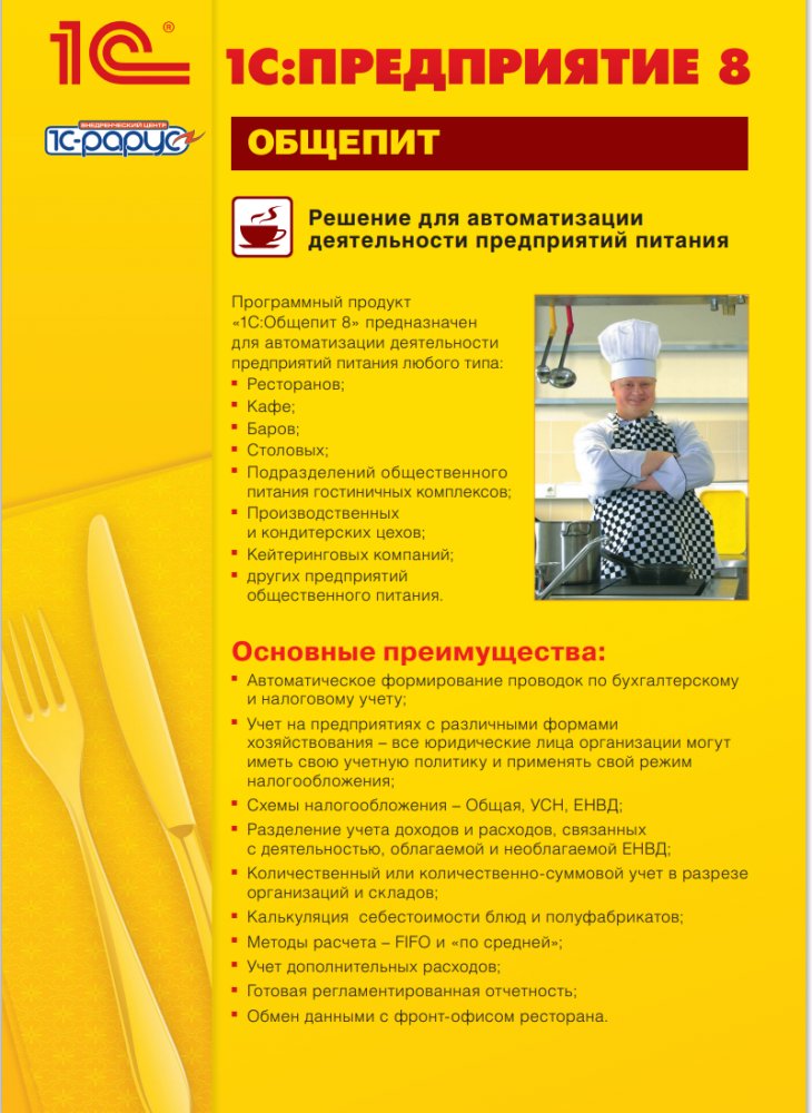 Продукт 1С:Общепит азработан на базе "1С:Бухгалтерия".