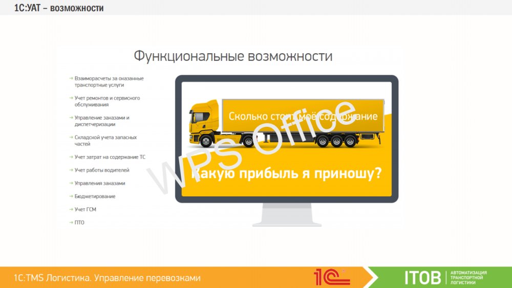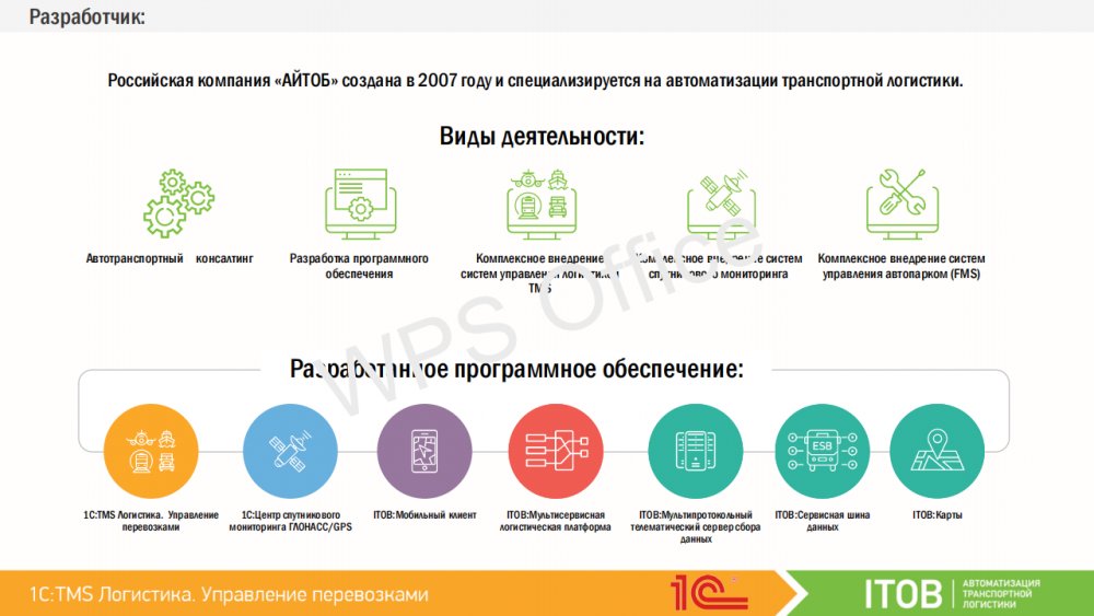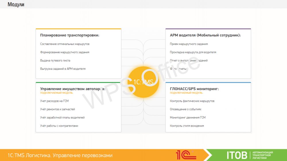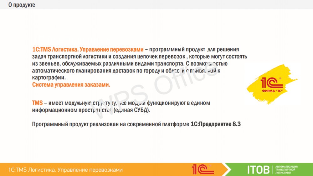 Продукт «1С:Предприятие 8. TMS Логистика. Управление перевозками» включает в себя: