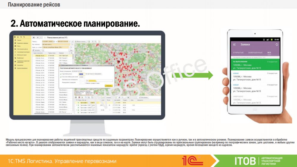 Отраслевое решение «1С TMS Логистика Управление перевозками» предназначено для компаний, которые в процессе осуществления своей деятельности необходимо решение задач транспортной логистики. Такие задачи включают в себя, помимо прочего, необходимость сопряженности участников транспортного логистического процесса в следующих областях: