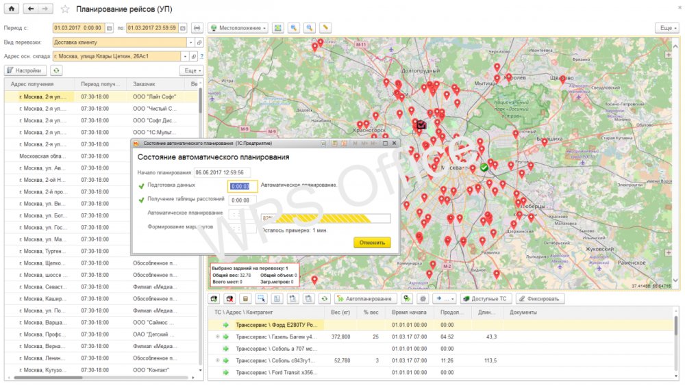 Подсистема предоставляет пользователю возможность автоматического и ручного формирования комплектных и сборных Рейсов, причем:
