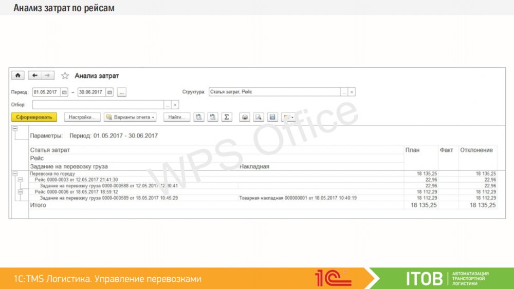 Подсистема предоставляет пользователю возможность получения информации по оценке ключевых показателей эффективности выполненных перевозок, и проведения анализа статистических данных, наколенных в информационной базе с различной степенью детализации.
