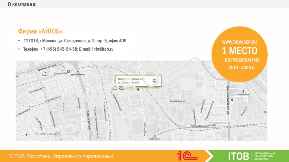 В части, относящейся к работе непосредственно с конфигурацией «TMS Логистика. Управление перевозками», консультации оказывает партнер-разработчик компания «ITOB» с 10:00 до 19:00 по московскому времени, кроме суббот, воскресений и праздничных дней (по распорядку московских предприятий):