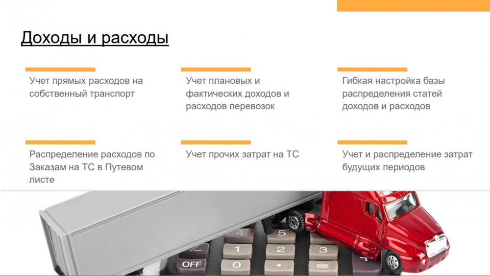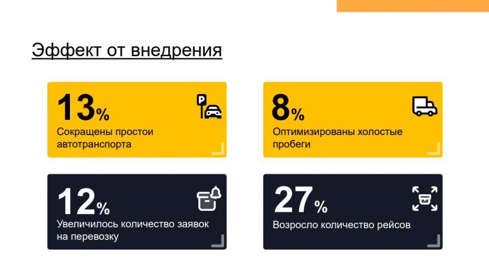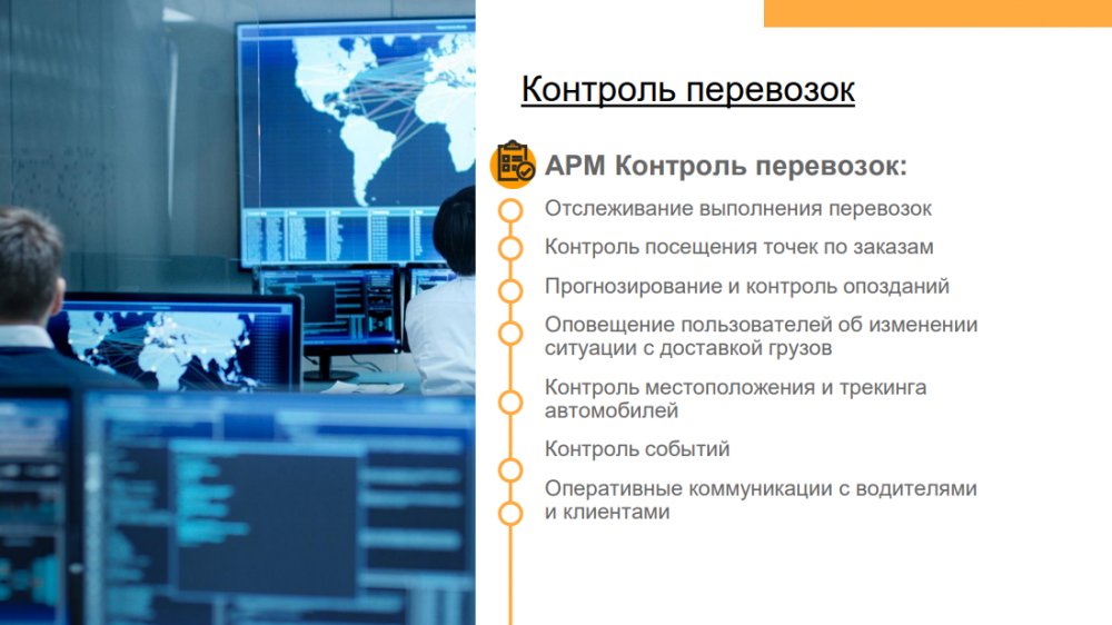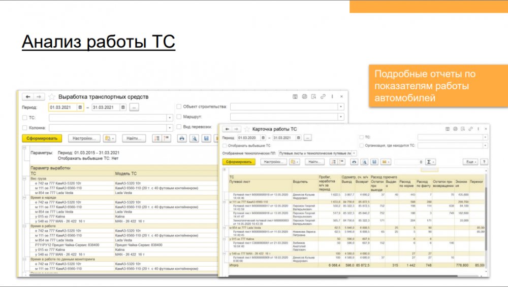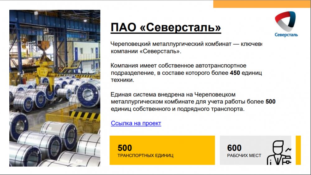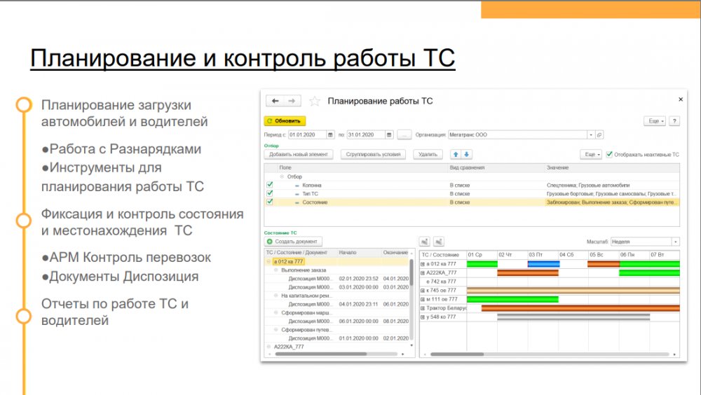 Решение позволяет повысить эффективность деятельности транспортных компаний и транспортных подразделений предприятий с различной отраслевой спецификой: