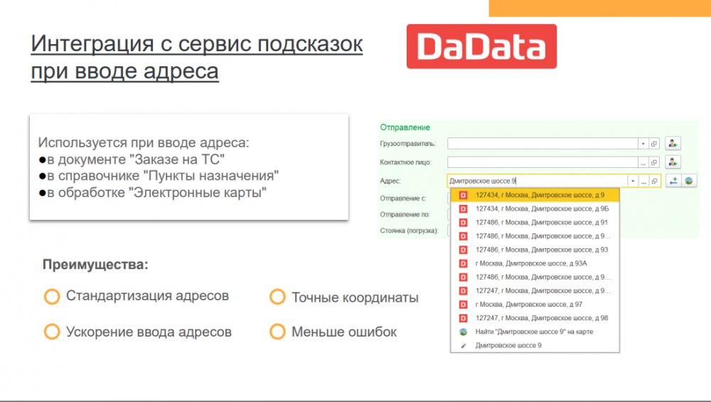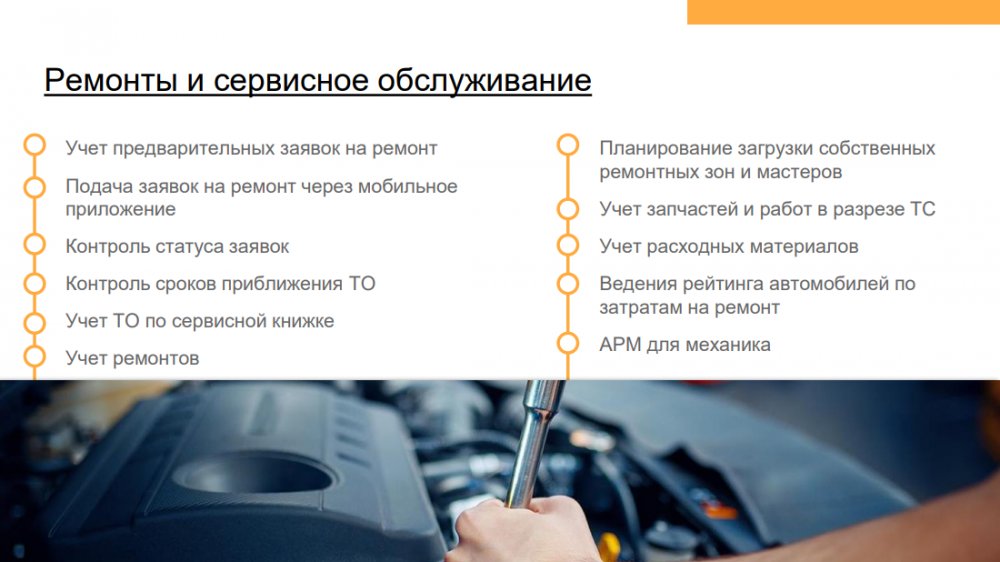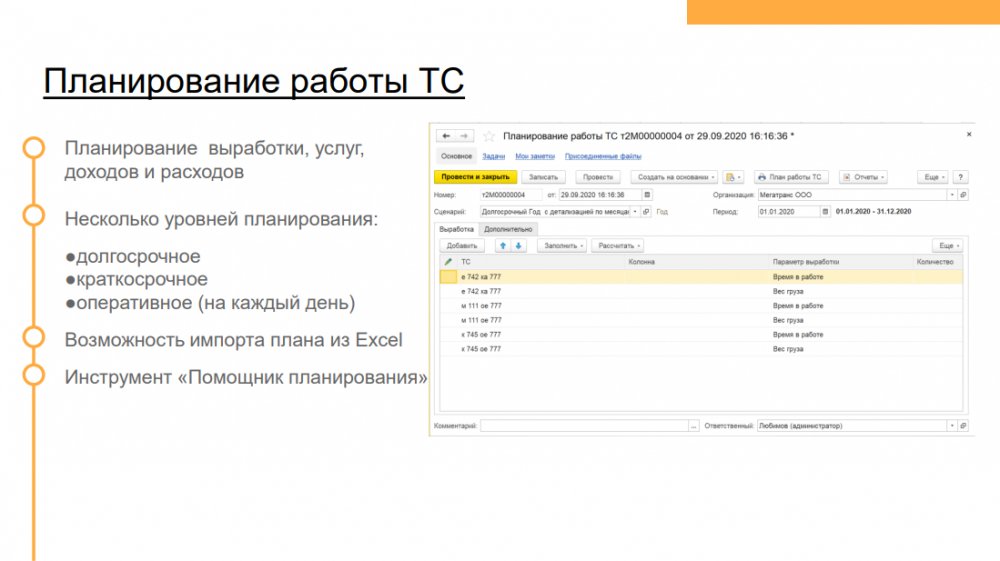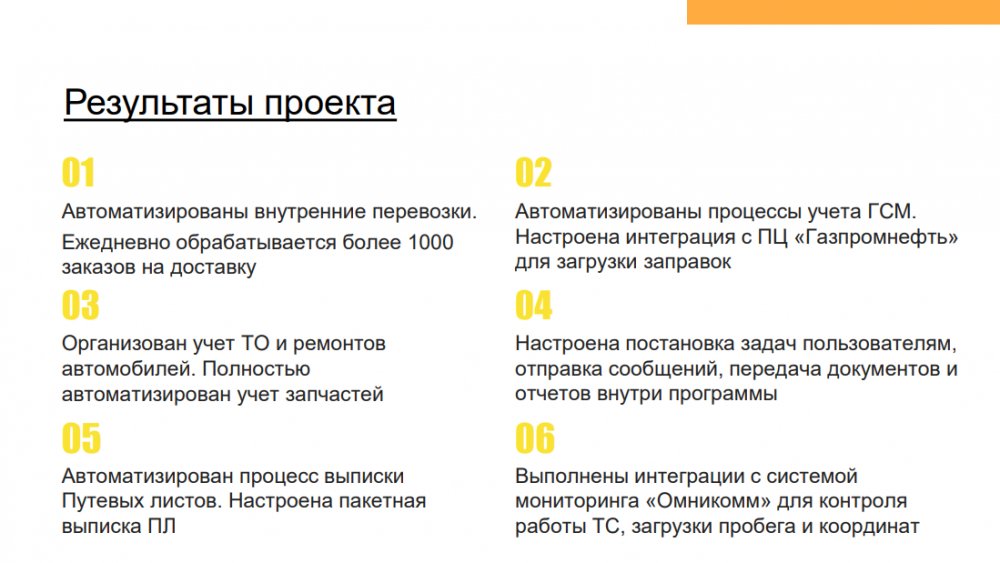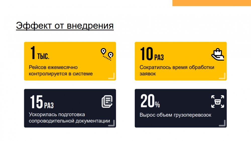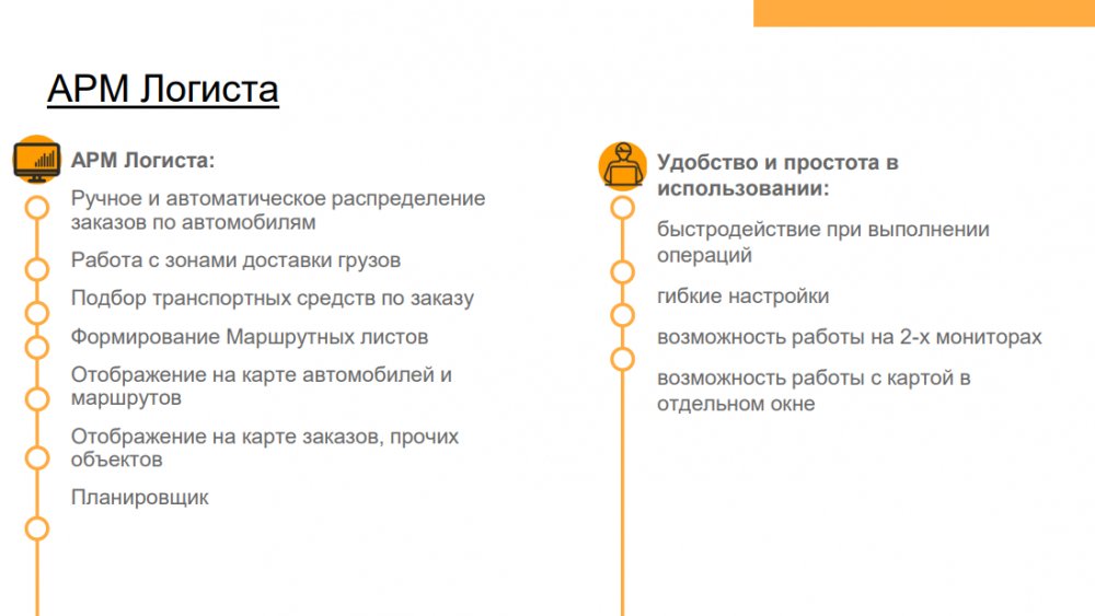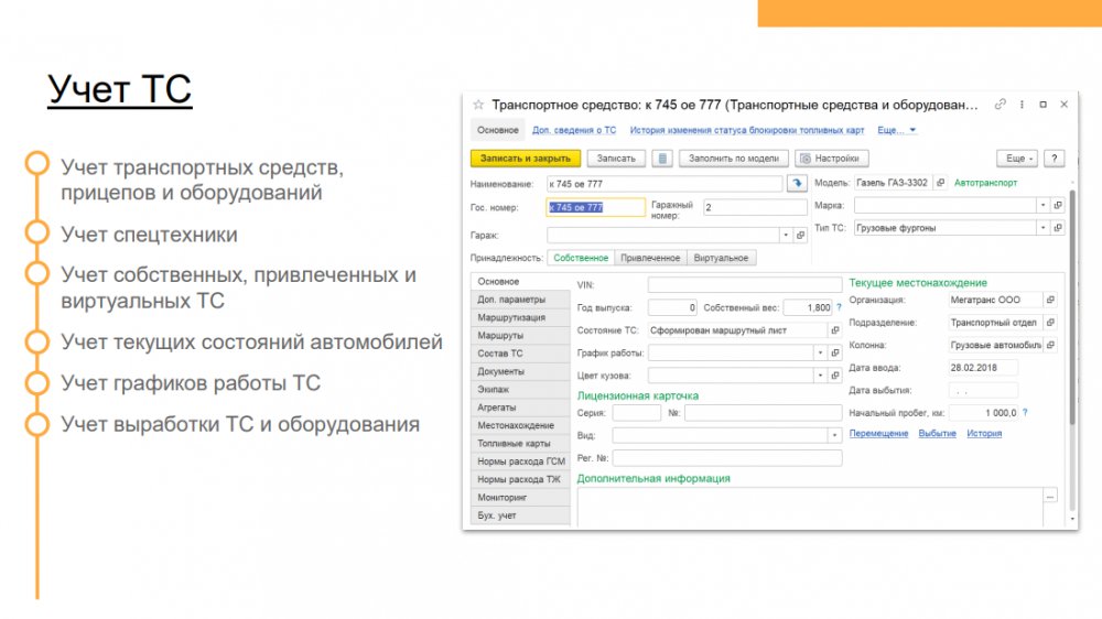 Решение позволяет повысить эффективность деятельности транспортных компаний и транспортных подразделений предприятий с различной отраслевой спецификой:
