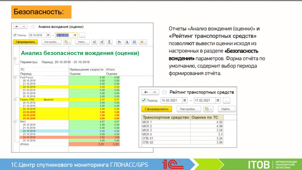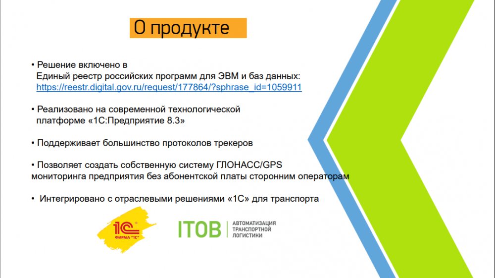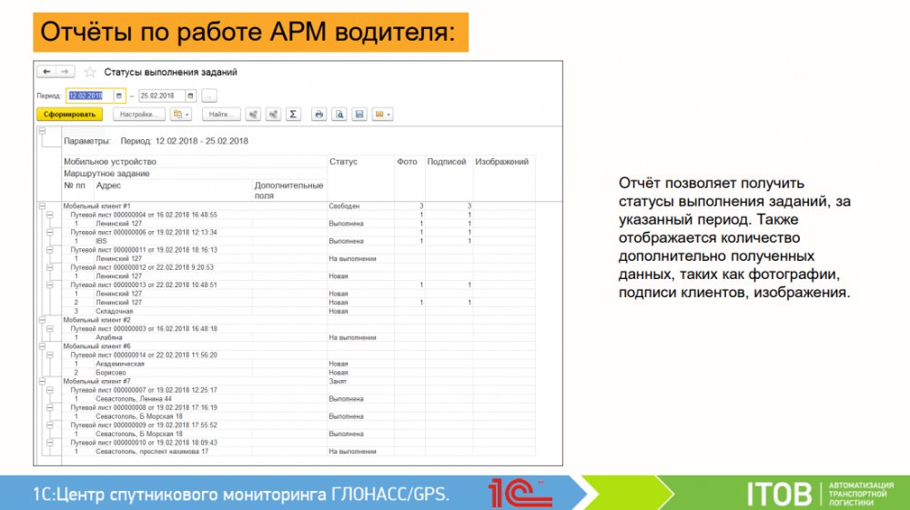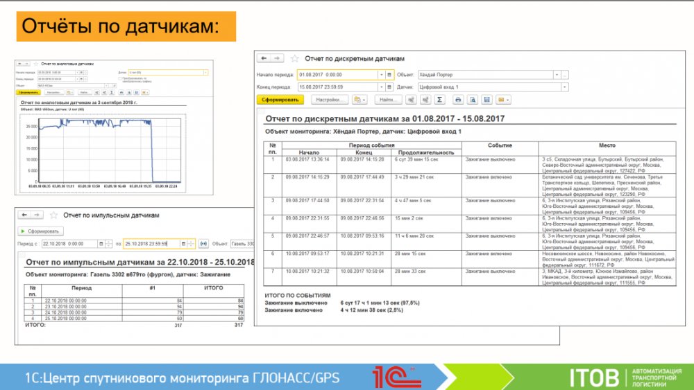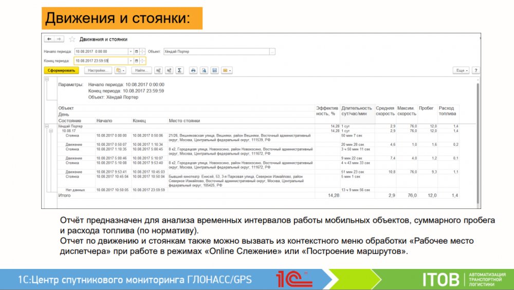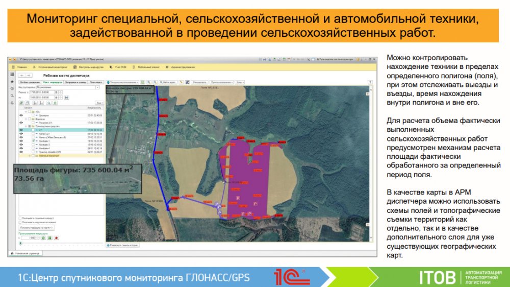 Программный продукт «1С Центр спутникового мониторинга 10 подв.объектов» обеспечивает следующие возможности: