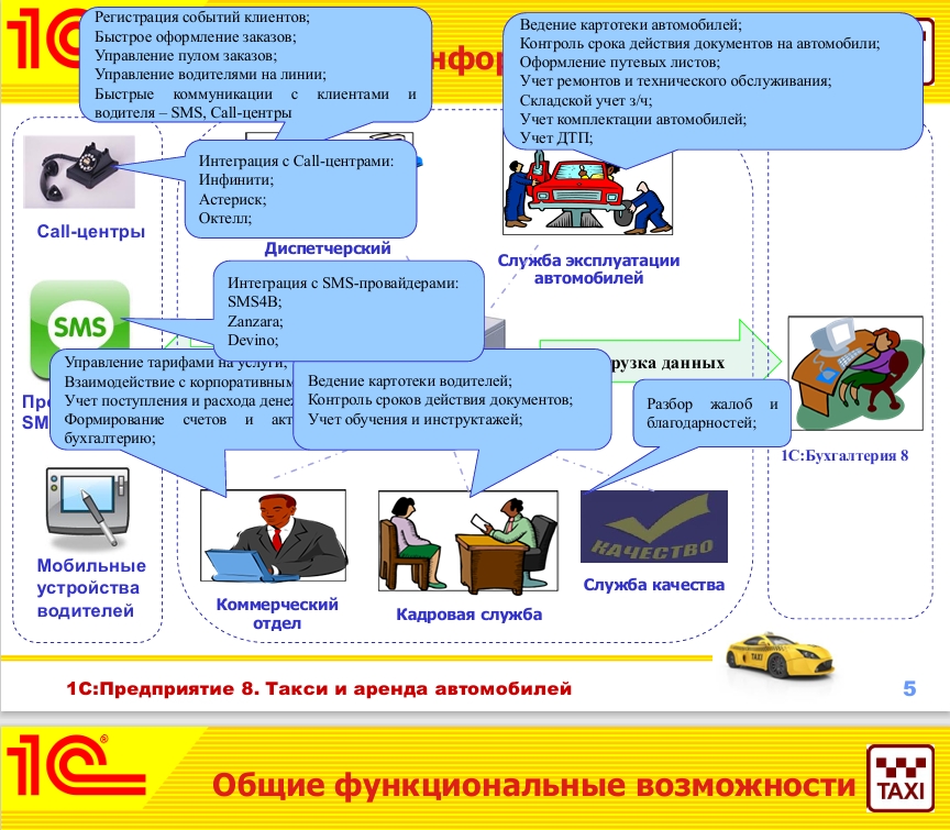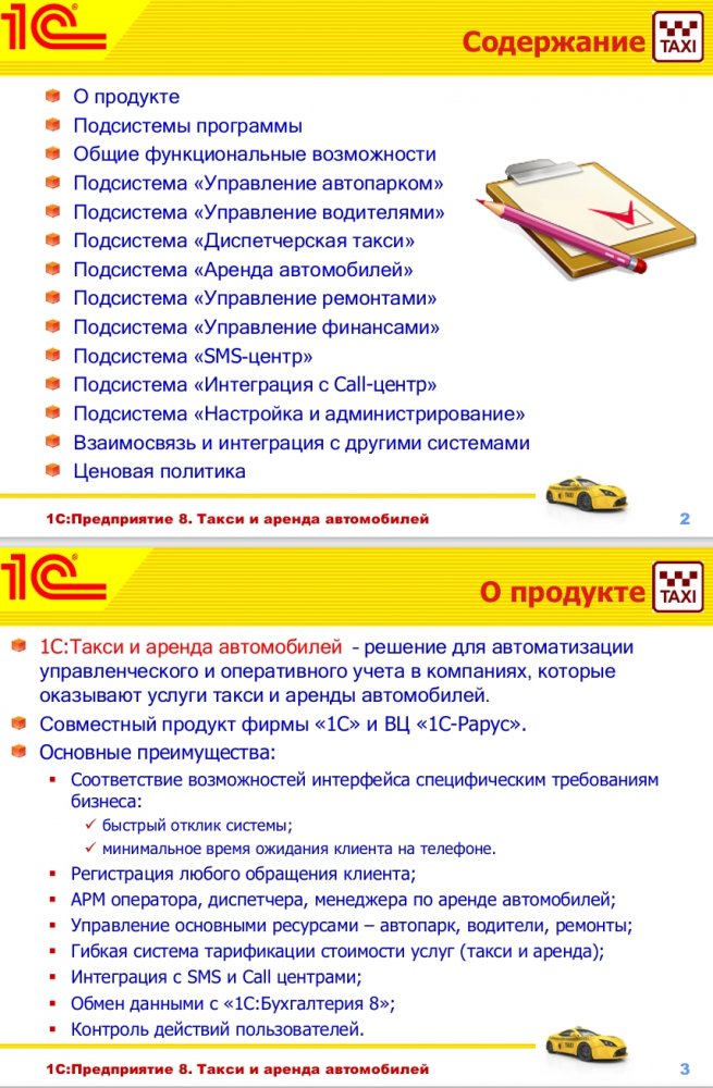 Продукт «1С:Предприятие 8. Такси и аренда автомобилей» включает в себя: