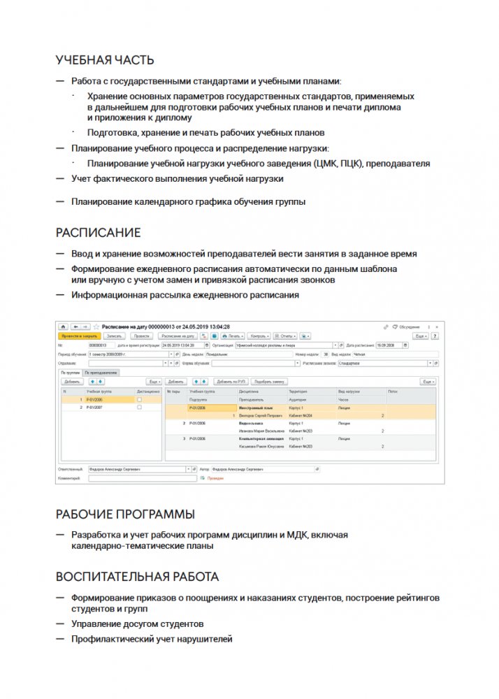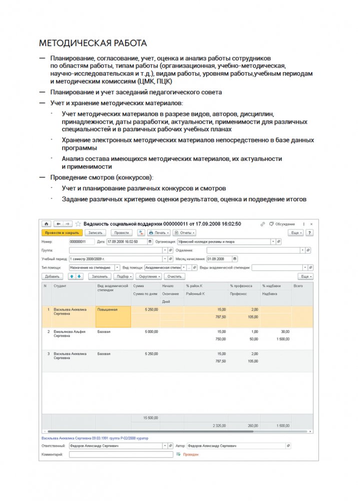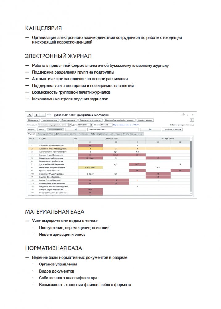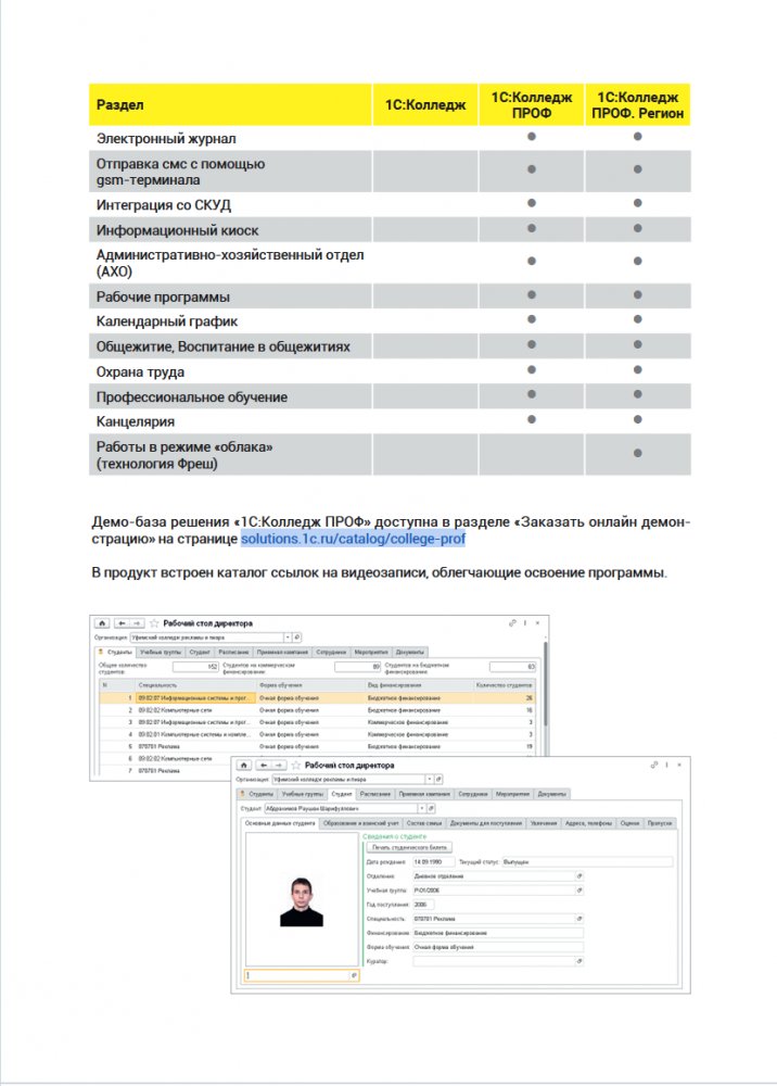 Функциональные возможности 1С Колледж ПРОФ: