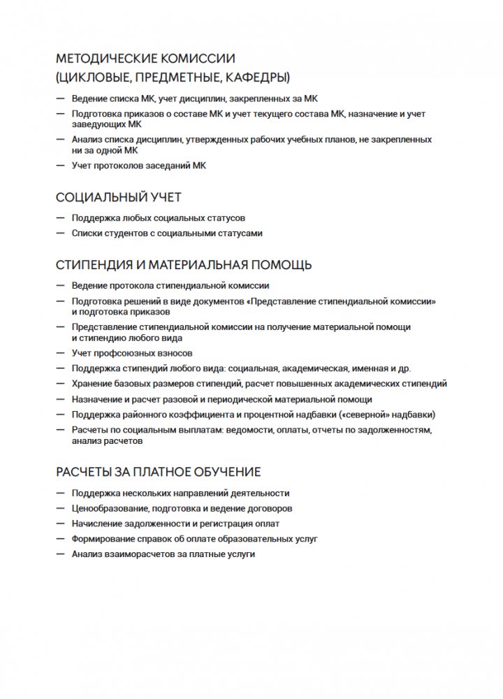 Решение 1С Колледж ПРОФ позволяет автоматизировать следующие рабочие места:
