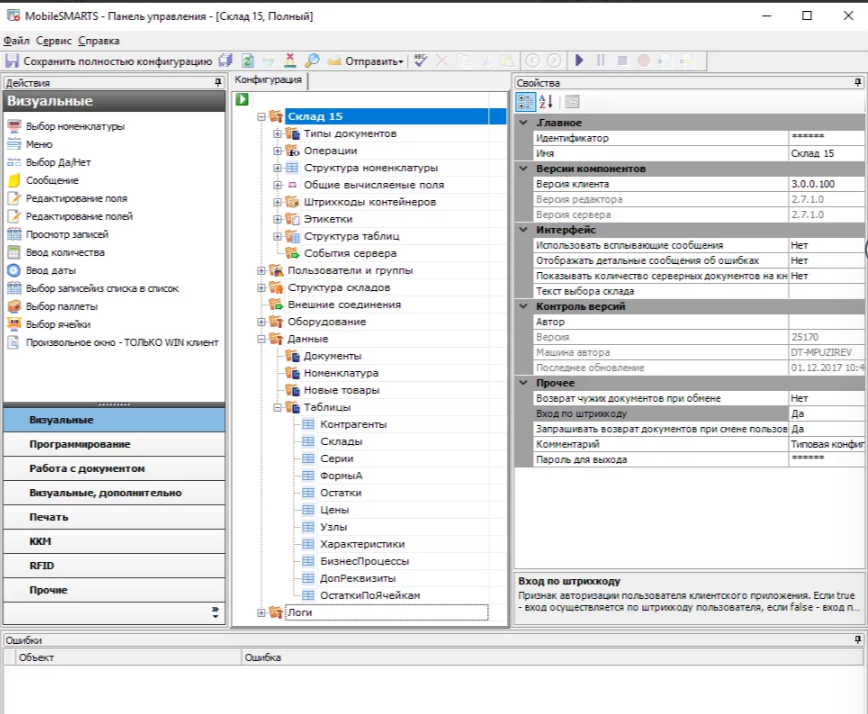 Функционал конфигурации «Склад 15» ограничен только возможностями платформы и способностями конкретного разработчика доработать конфигурацию. Функционал можно расширить при помощи доработки существующих или написания новых экранов и алгоритмов работы на ТСД в конфигураторе Mobile SMARTS.